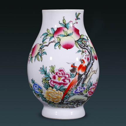 Peaches and peonies and birds pattern barrels shape ceramic vases