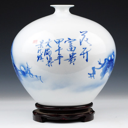 Designer hand painted pomegranate shape blue and white ceramic vase