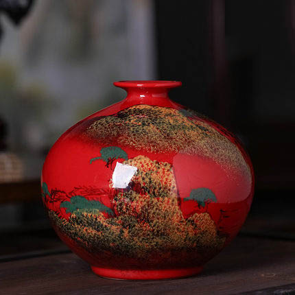 Jahrriesnge red landscape vase cna1355 Porcelain