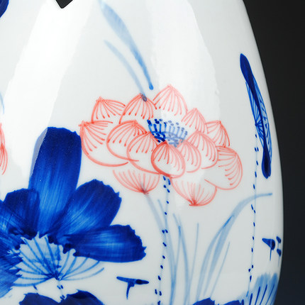 Hand painted small lotus pattern red in glaze chinese vases