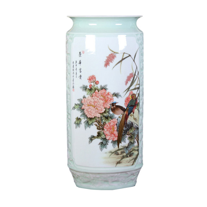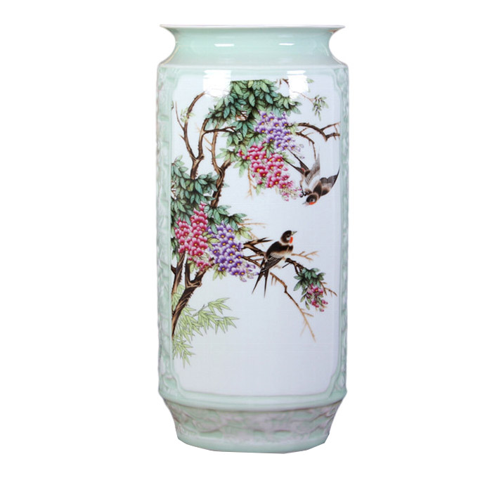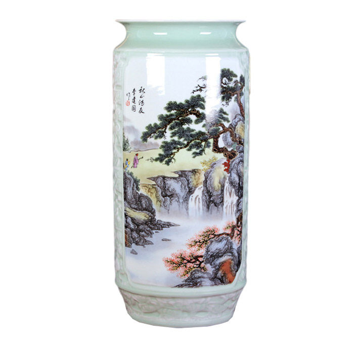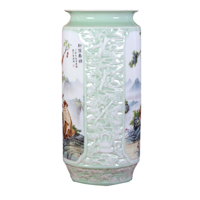 Jahrriesnge relief painting calligraphy cylinder vase cna1133 Porcelain
