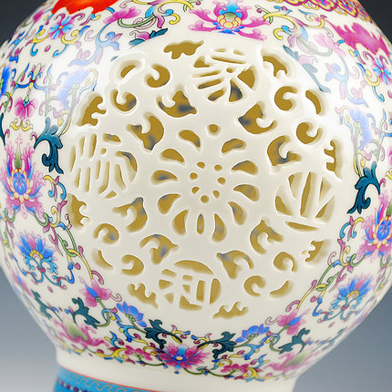 Famille rose porcelain hollow ceramic vase