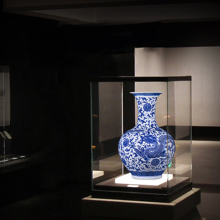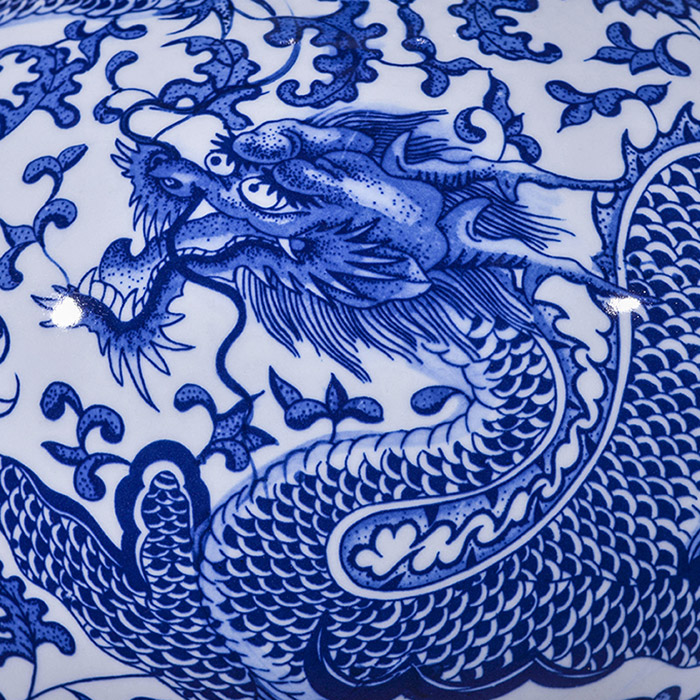 Chinese large blue and white porcelain vase with dragon decorations