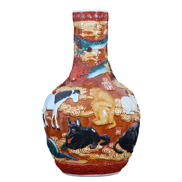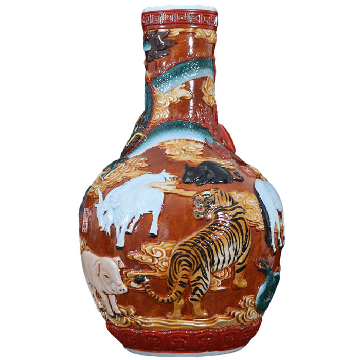 Vintage Qing dynasty Qianlong relief celestial vase with Zodiac by bth