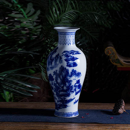 Blue and white porcelain landscape attic fishtail shape ceramic vase