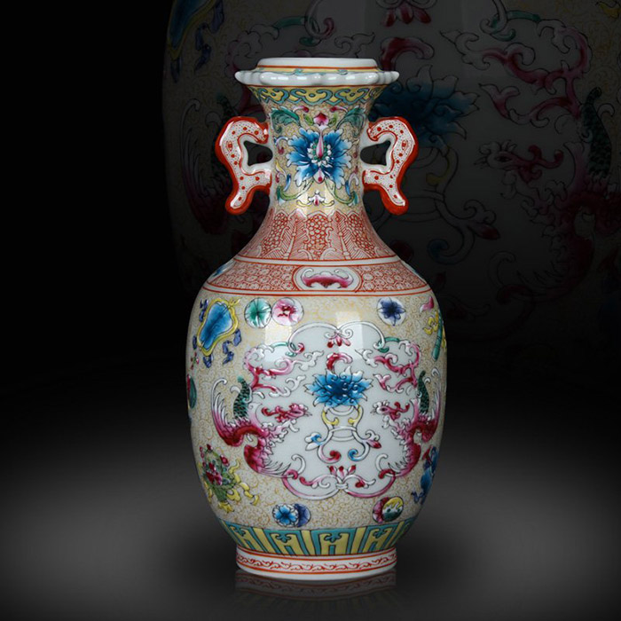 Hand painted pastel valuable decorated ceramics vase with phoenix