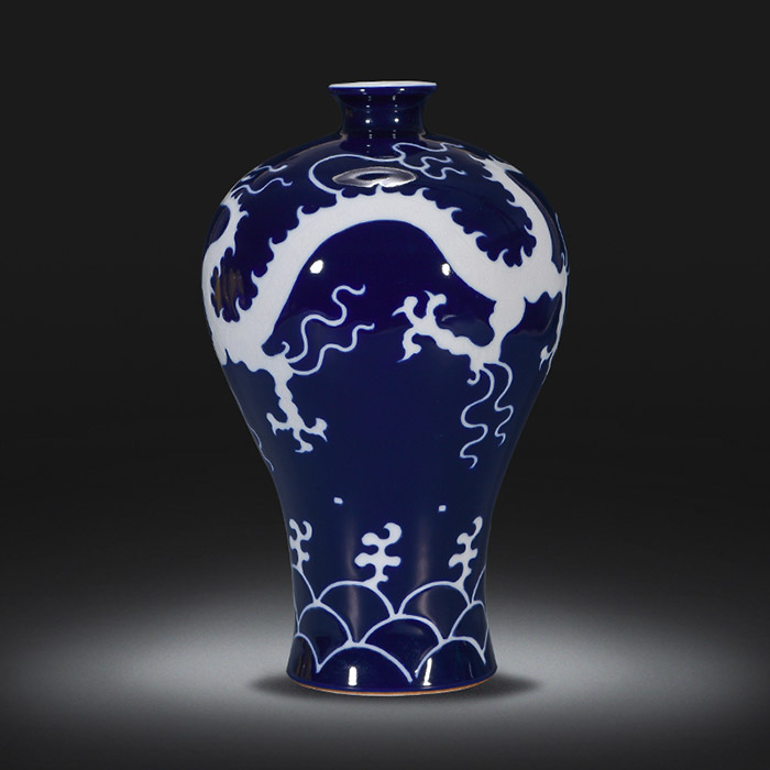 Jingdezhen carved white dragon blue mermaid ceramic flower vase