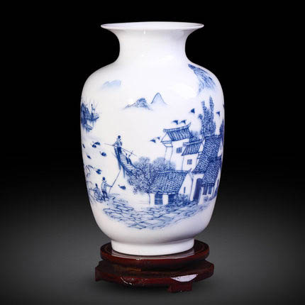 Winter melon shape Jiangnan water town pattern ceramic vase