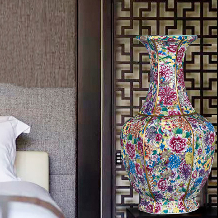 Large vintage qing dynasty qian long gold-painted floor ceramic vase