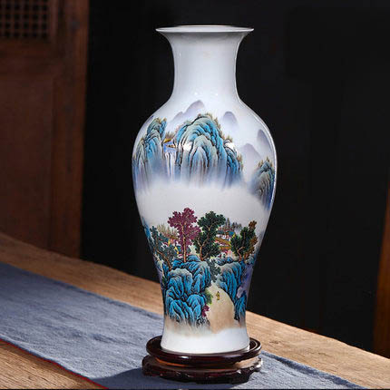 Small fishtail shape mountains and trees chinese ceramic vase