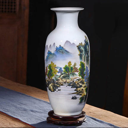 Small winter melon shape mountains and trees chinese ceramic vase