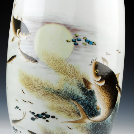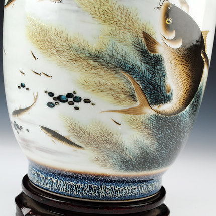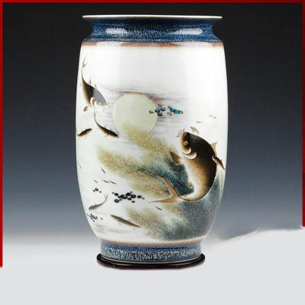 Fish pattern kiln change glaze barrel shape ceramic vase