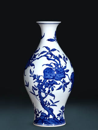 Vintage qing dynasty qian long blue and white ceramic vase ornaments