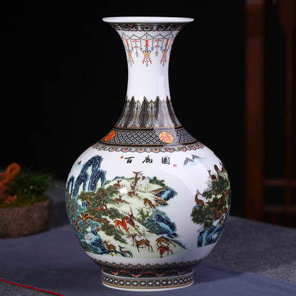 Chinese thin tire porcelain flower vase ornaments with deer painting