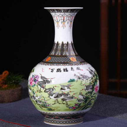 Chinese thin tire porcelain flower vase ornaments cranes painting