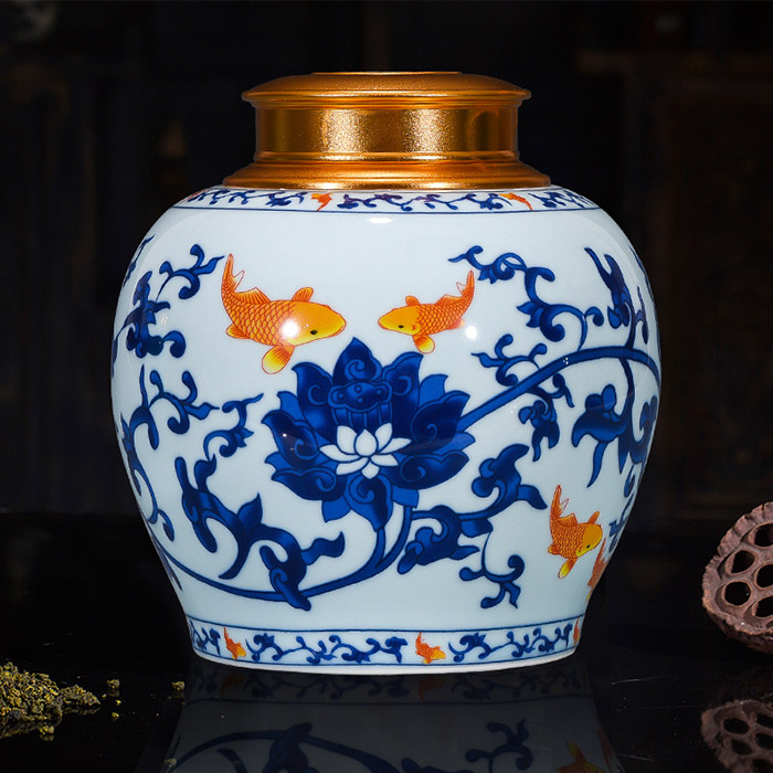 Vintage small sealed moisture-proof blue and white ceramic storage pot