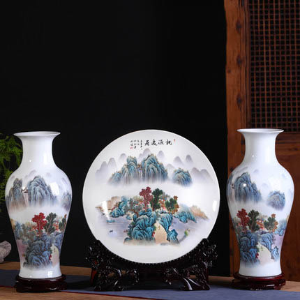 Big mountains and rivers scenery ceramic vases three-piece set made in