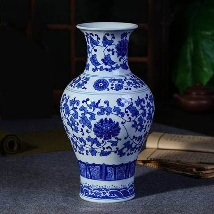 Ceramic Blue and White Porcelain tangled lotus Fishtail Shape Vase