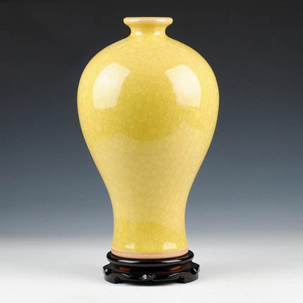 Jahrriesnge yellow ice cube cracked gourd vase cna0736 Porcelain
