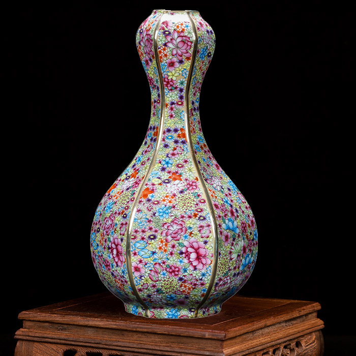 Vintage Qing dynasty multi-flowers garlic shape vase for flowers