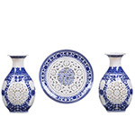 Vintage small birds and flowers majolica ceramic vase ornaments