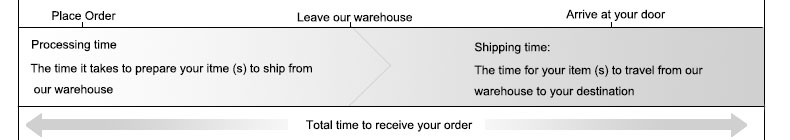 1. Item Processing Time: The processing time is the time it takes for the seller to prepare the item(s) for shipment. There are different processing times for different items depending on product category and volume. Usually it is around 5 to 10 working days to process.